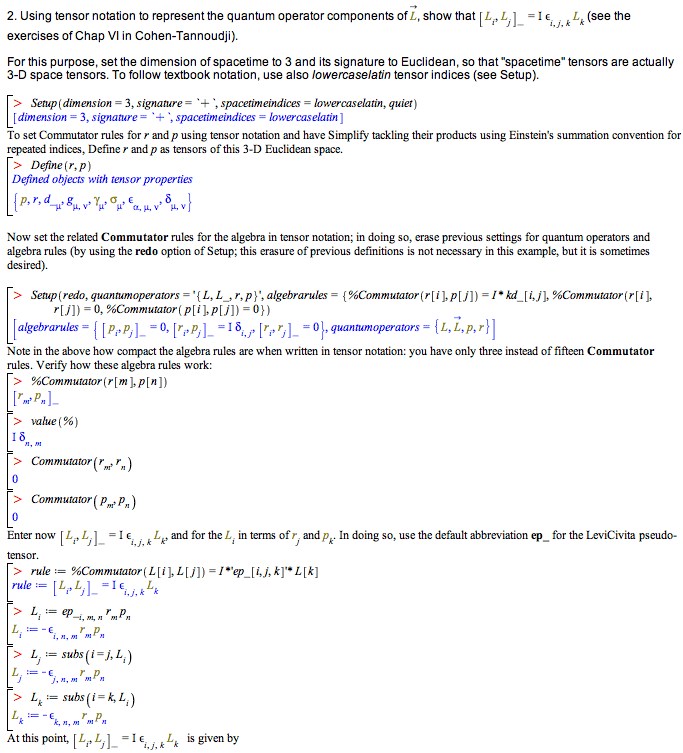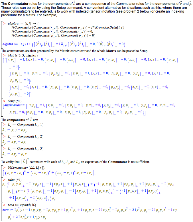 下表 列出了 Maple 在物理学代数计算方面的能力。在所有情况下,该领域的问题均可使用与纸上书写相同的符号在 Maple 中表达,结果展示方式与教科书中的呈现形式完全一致。