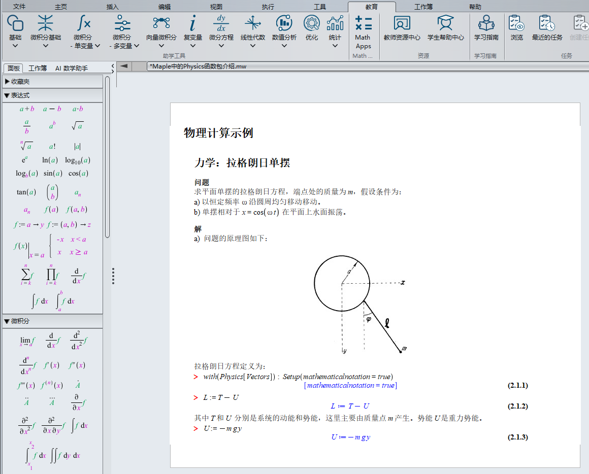 Maple Physics 物理包提供业内领先的物理学计算支持